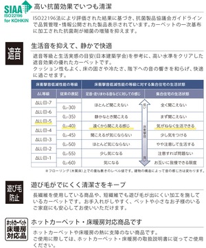 アレルギーの原因の一つとされるダニの増殖を抑制する防ダニ加工や、店舗や施設でも安心してお使いいただける防炎加工も施されています。