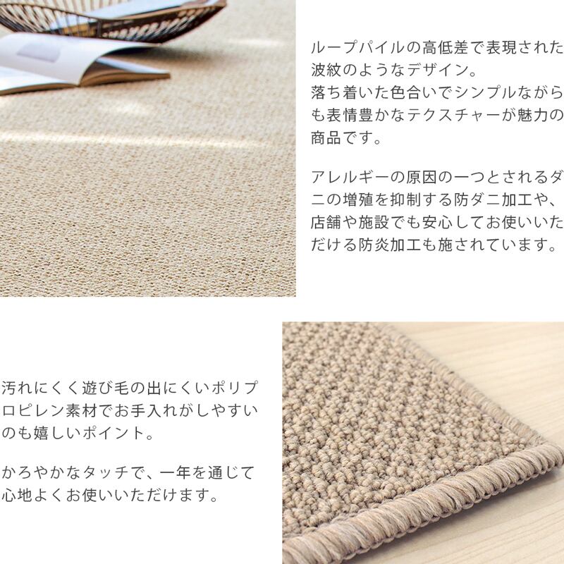 ラグマット 円形 円型 130cm 丸 汚れにくく遊び毛出にくい素材でお手入れしやすい♪ 波紋のような上質感のあるテクスチャー 無地 ループ カーペット全3色 防炎ラベル付『アスボニー/BNI』