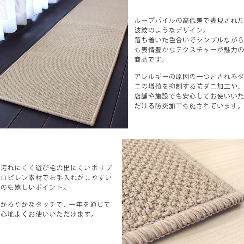 廊下カーペット 廊下敷き マット 幅85cm×長さ240cm 汚れにくく遊び毛出にくい素材でお手入れしやすい♪ 波紋のような上質感のあるテクスチャー 無地 ループ カーペット全3色 防炎ラベル付『アスボニー/BNI』