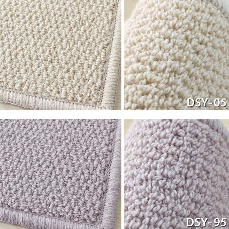 優しい色合いと大きさの異なるループパイルの高低差で仕上げられた表情のあるテクスチャーが魅力の天然素材ウール100%のカーペットです。