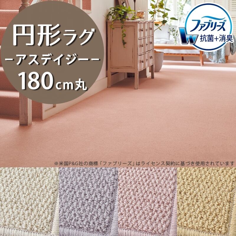ラグマット 円形 円型 180cm 丸 ファブリーズ カーペット「消臭+抗菌」のダブル効果でイヤな臭いの元を90%以上カット!優しい色合いの天然素材ウール100% 無地 ループ カーペット全4色 防炎ラベル付『アスデイジー/DSY』