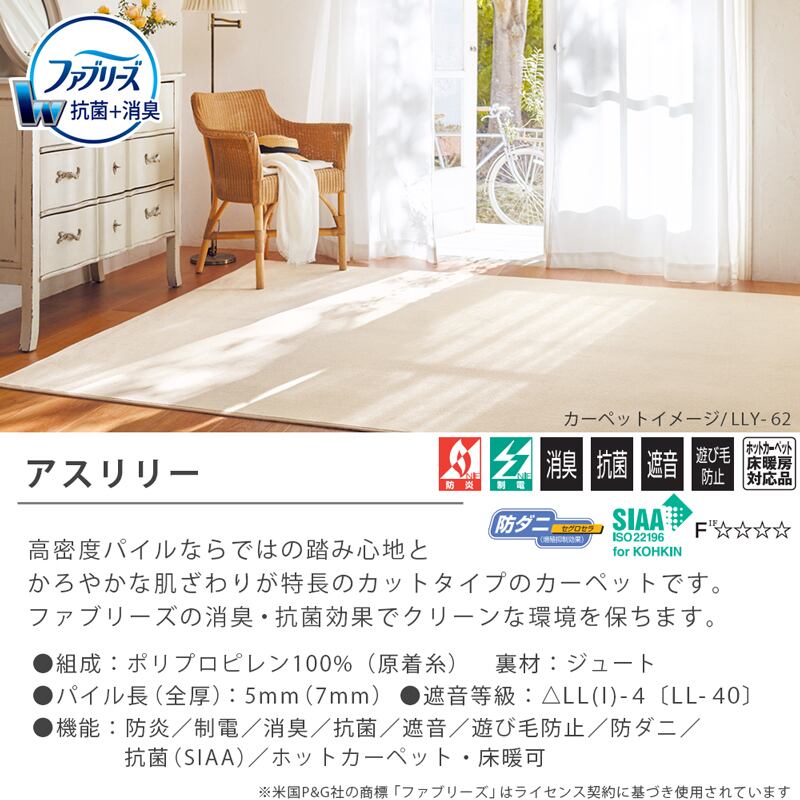 廊下カーペット 廊下敷き マット 幅90cm×長さ340cm ファブリーズ カーペット「消臭+抗菌」のダブル効果でイヤな臭いの元を90%以上カット!高密度パイルでかろやかなタッチ 淡い濃淡パイルの杢調 無地 カットカーペット 全4色 防炎ラベル付『アスリリー/LLY』