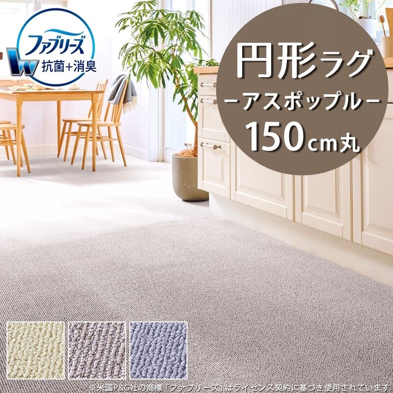 ラグマット 円形 円型 150cm 丸 ファブリーズ カーペット「消臭+抗菌」のダブル効果でイヤな臭いの元を90%以上カット!インテリアコーディネートしやすいシンプルな無地ループタイプ 全3色 防炎ラベル付『アスポップル/PPL』