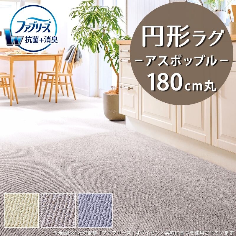ラグマット 円形 円型 180cm 丸 ファブリーズ カーペット「消臭+抗菌」のダブル効果でイヤな臭いの元を90%以上カット!インテリアコーディネートしやすいシンプルな無地ループタイプ 全3色 防炎ラベル付『アスポップル/PPL』