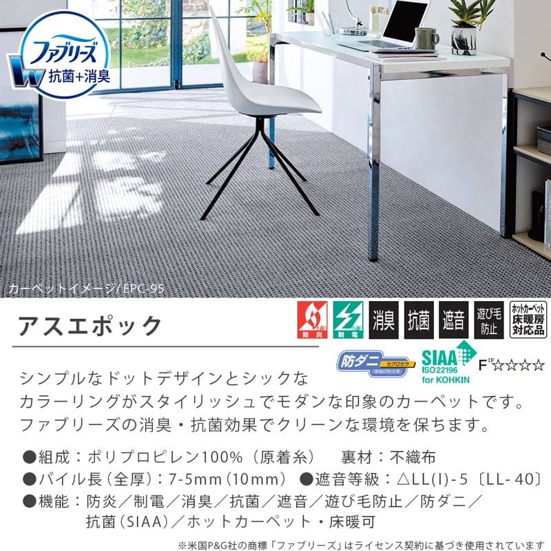 デスクカーペット デスクマット 110×130cm ファブリーズ カーペット「消臭+抗菌」のダブル効果でイヤな臭いの元を90%以上カット!シックな濃淡カラーの杢調 ドットデザイン 全4色 防炎ラベル付『アスエポック/EPC』