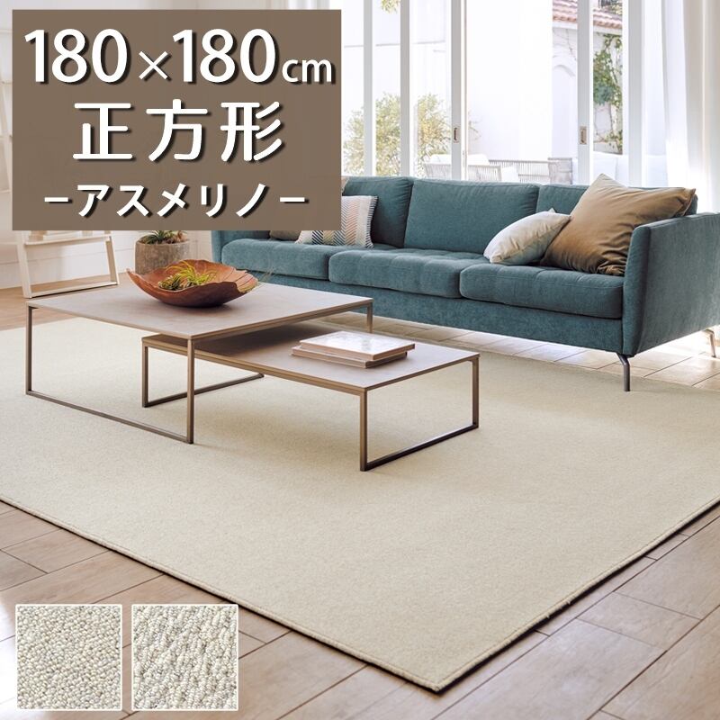 ラグマット ラグ 正方形 180×180cm 高級な優良種メリノウールだけを使用したウール100%カーペット 風合いの異なる2種類のループタイプ 防炎ラベル付『アスメリノ/MRN』