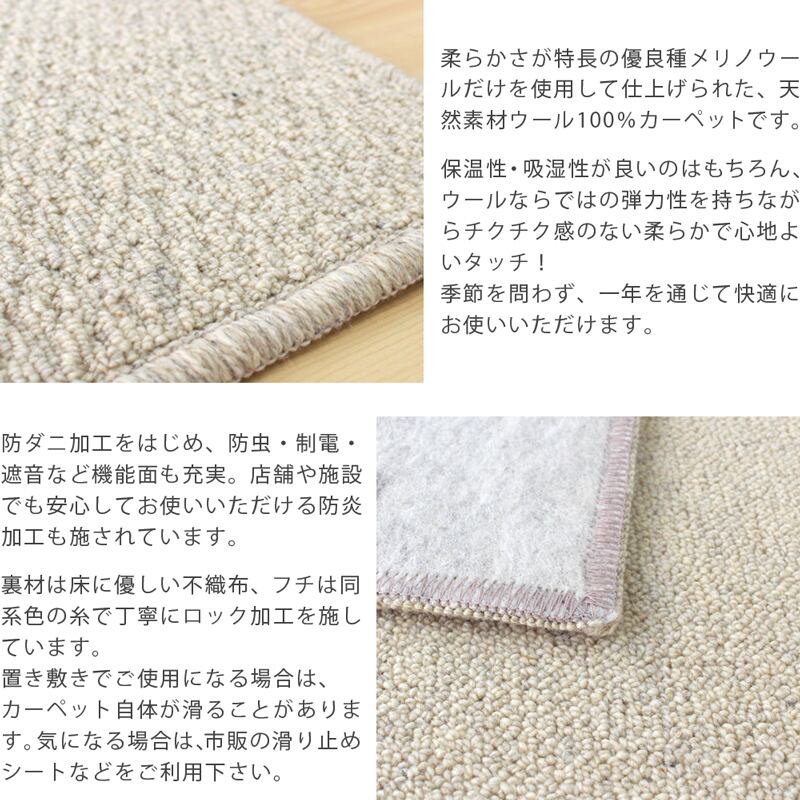 ウールの中でも高級な素材メリノウールだけを使用した、天然素材ウール100%カーペットです。
