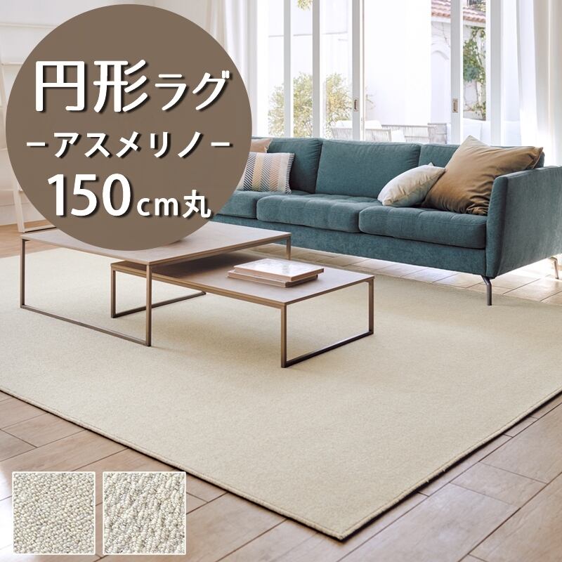 ラグマット 円形 円型 150cm 丸 高級な優良種メリノウールだけを使用したウール100%カーペット 風合いの異なる2種類のループタイプ 防炎ラベル付『アスメリノ/MRN』