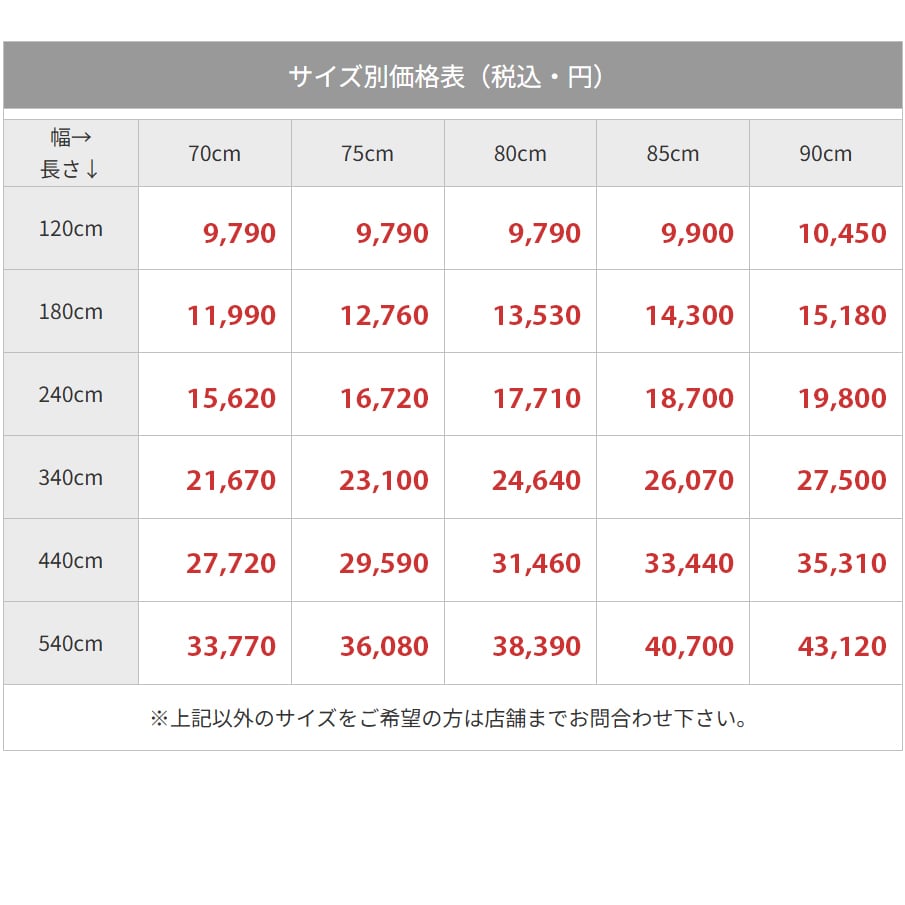専門店ならではのサイズ展開でご要望にお応えいたします。大量注文や表記にないサイズなどもお気軽にご相談下さい。