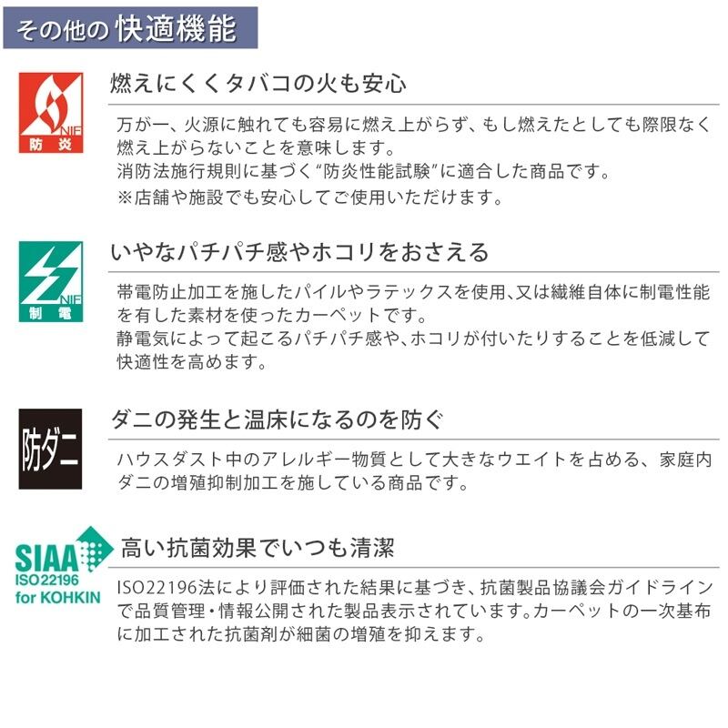 遊び毛の出にくい素材でお手入れがしやすく、防炎加工も施されているので、店舗や施設でも安心してお使いいただけます。