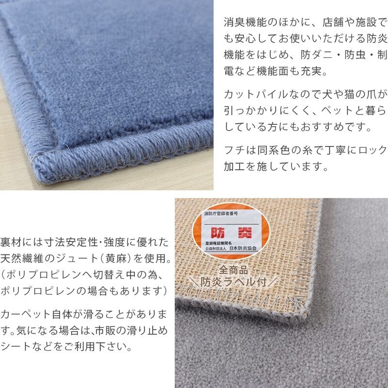 高密度で弾力のある足ざわりが心地よい自然素材ウール100%の消臭カーペットです。